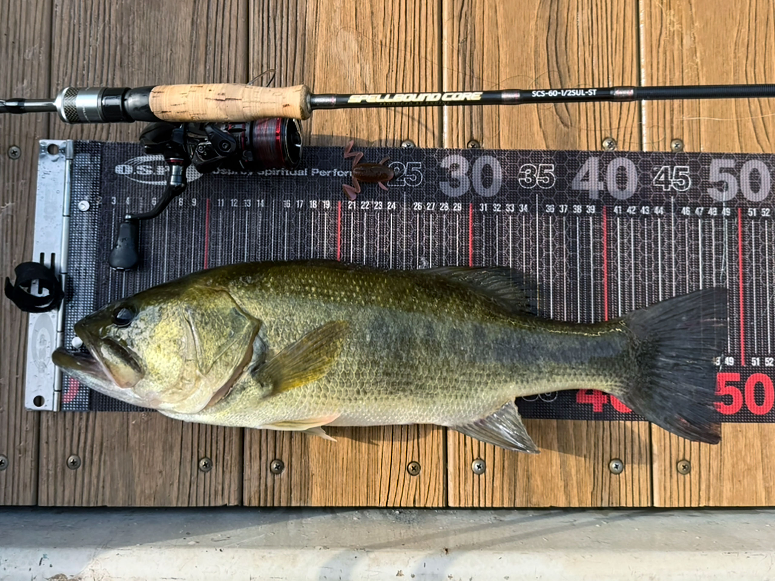岩盤に平行に房総蛙のミドストを通した所49cmが釣れました!
